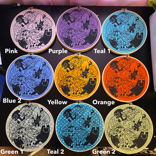Bunches-O-Babies Cat Illustration | Screen Printed Fabric Wall Hanging Embroidery Hoop
