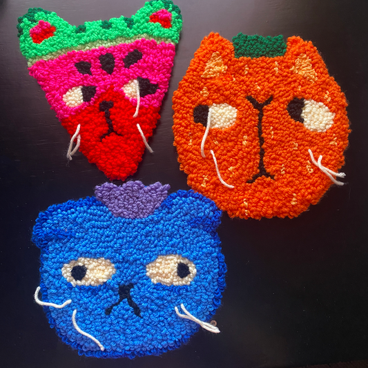 Fruit Cat Rug | Plushie, Wall-Hanging, Tabletop | Punch Needle Tufting