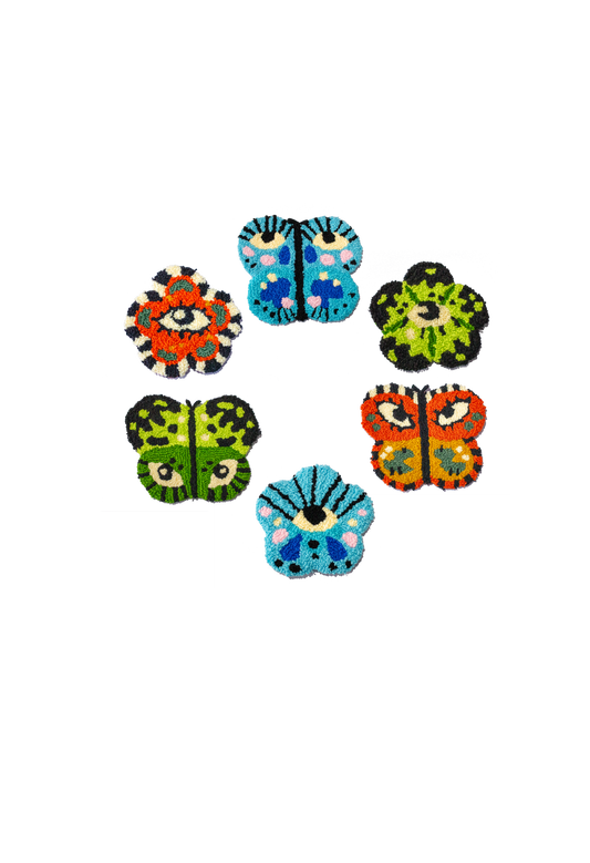 Butterfleye’s Garden | Butterfly Eyeball Rugs + Flowers | Assorted Colors | Handmade
