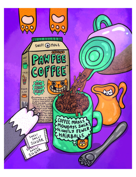 Catfeine Ground Pawfee Coffee Cat Breakfast Art Print