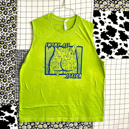 Swamp Ass Season Muscle Tank | Gross Body Positivity | Natural Chartreuse Dye